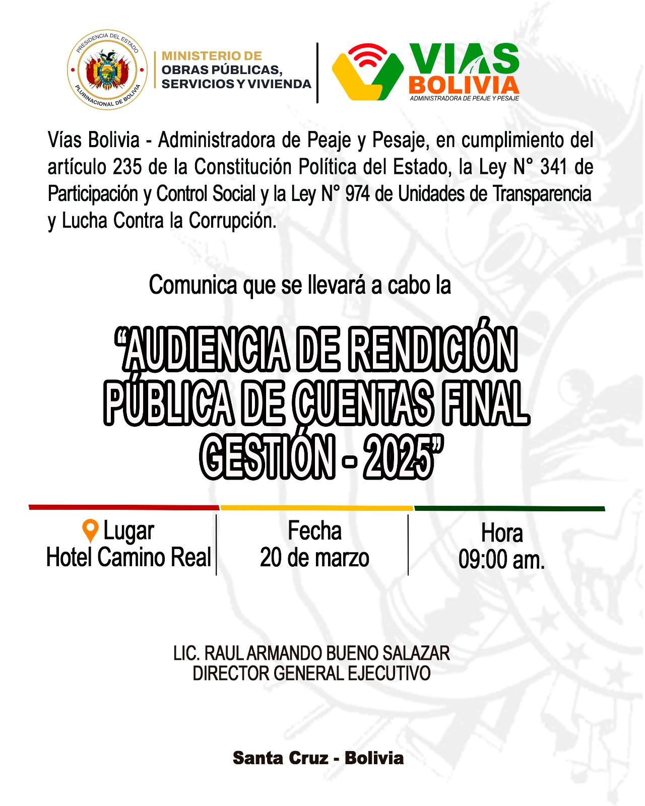 VÍAS BOLIVIA DESTACA TRANSFORMACIÓN INSTITUCIONAL EN LOS PRIMEROS 100 DÍAS DE GESTIÓN DE GOBIERNO