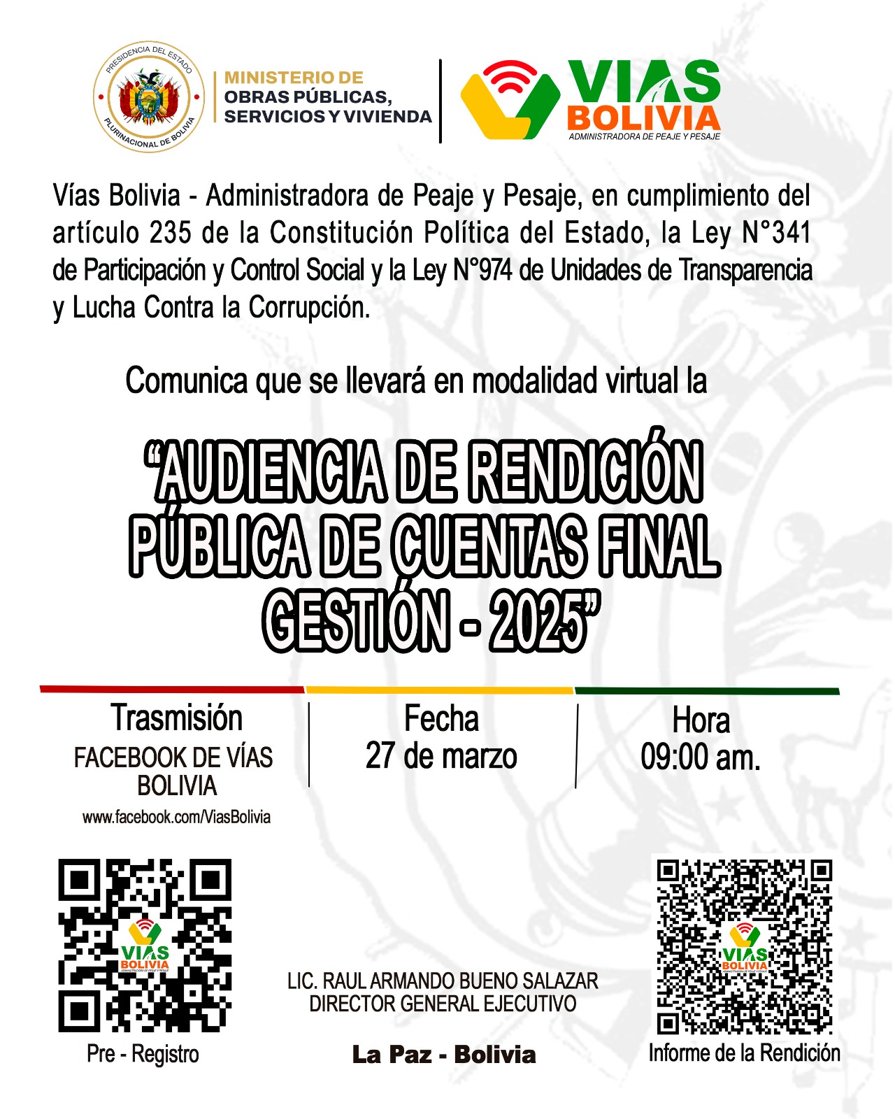 VÍAS BOLIVIA DESTACA TRANSFORMACIÓN INSTITUCIONAL EN LOS PRIMEROS 100 DÍAS DE GESTIÓN DE GOBIERNO